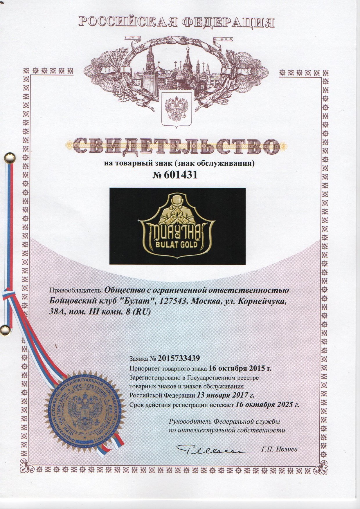 Товарный знак «Булат» (Россия) зарегистрирован в Государственном реестре товарных знаков РФ